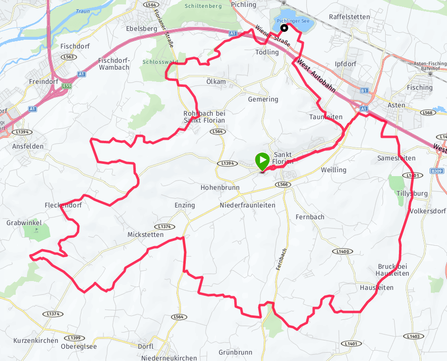 Wir haben es heute geschafft! Einmal rund um St. Florian – ein Wandertag, der schon 2019 einmal stattfand (3 Finisher auf der gesamten Strecke). In 9,5 Stunden bei nebeligem Wetter und teilweise morastigem Untergrund haben wir (Rudolf und ich) 48 km und 750 hm zurückgelegt. Ich hoffe, dass St. Florian Rundumadum 2022 wieder stattfinden kann!