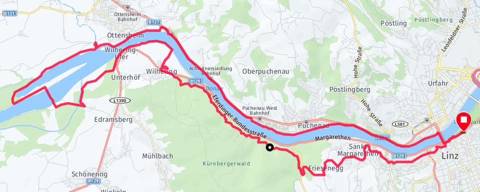 Zum Kennenlernen der Teilstrecke vom Linz77 Donautrail bin ich gestern schon um 5:30 Uhr von Linz/Oberbank gestartet. Bei angenehmen Temperaturen ging es gemütlich Richtung Ottensheim. Eigentlich wollte ich schon eine Woche früher starten, doch dies wäre beim Donauhochwasser teilweise eine Schwimmübung gewesen. Beim Kraftwerk Ottensheim wurde die Donau überquert. Zurück nach Linz ging es über Wilhering und den Donausteig. Dieser anspruchsvolle Steig ist einfach wunderschön zu laufen! Die Anstrengung wird mit schönen Ausblicken ins Donautal belohnt. Zum Schluss folgte der steile Anstieg zur Aussichtswarte am Freinberg. Oben angekommen entzückt der Ausblick über Linz und das Donautal.