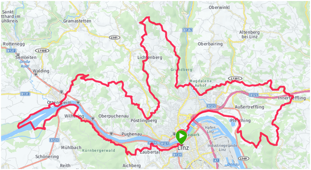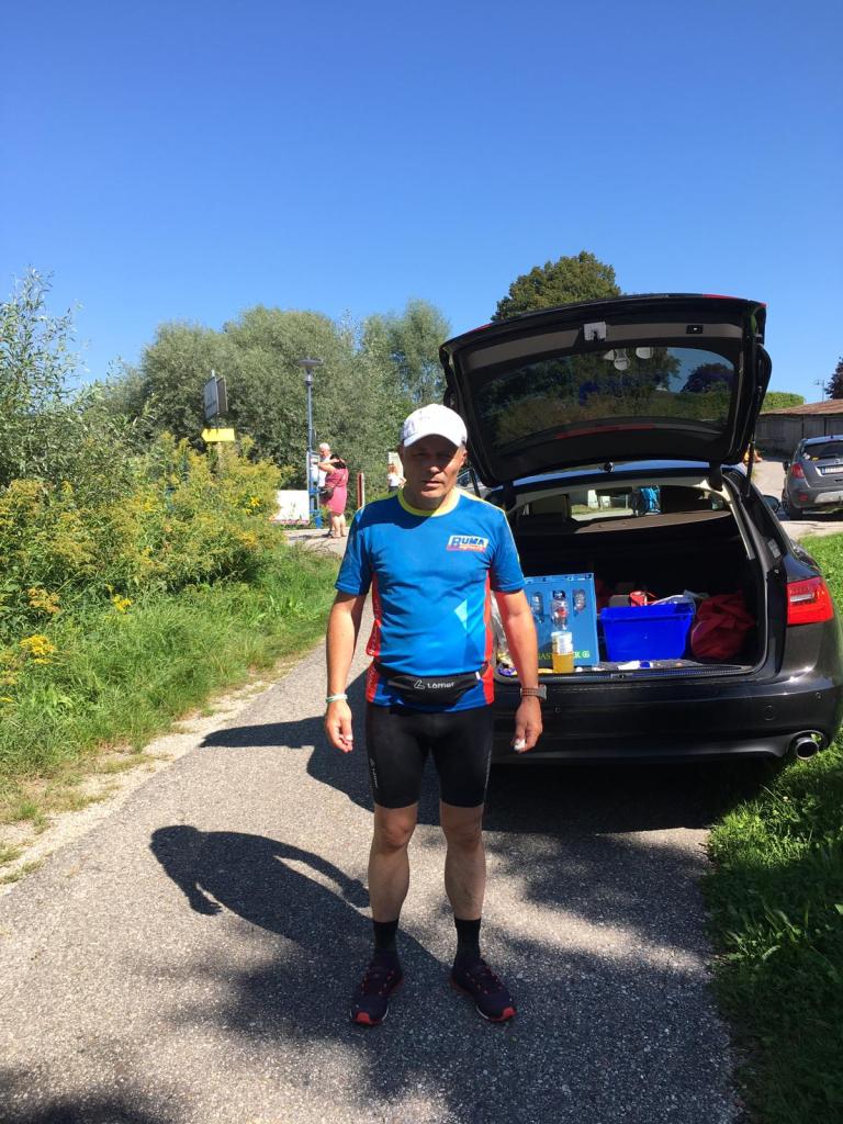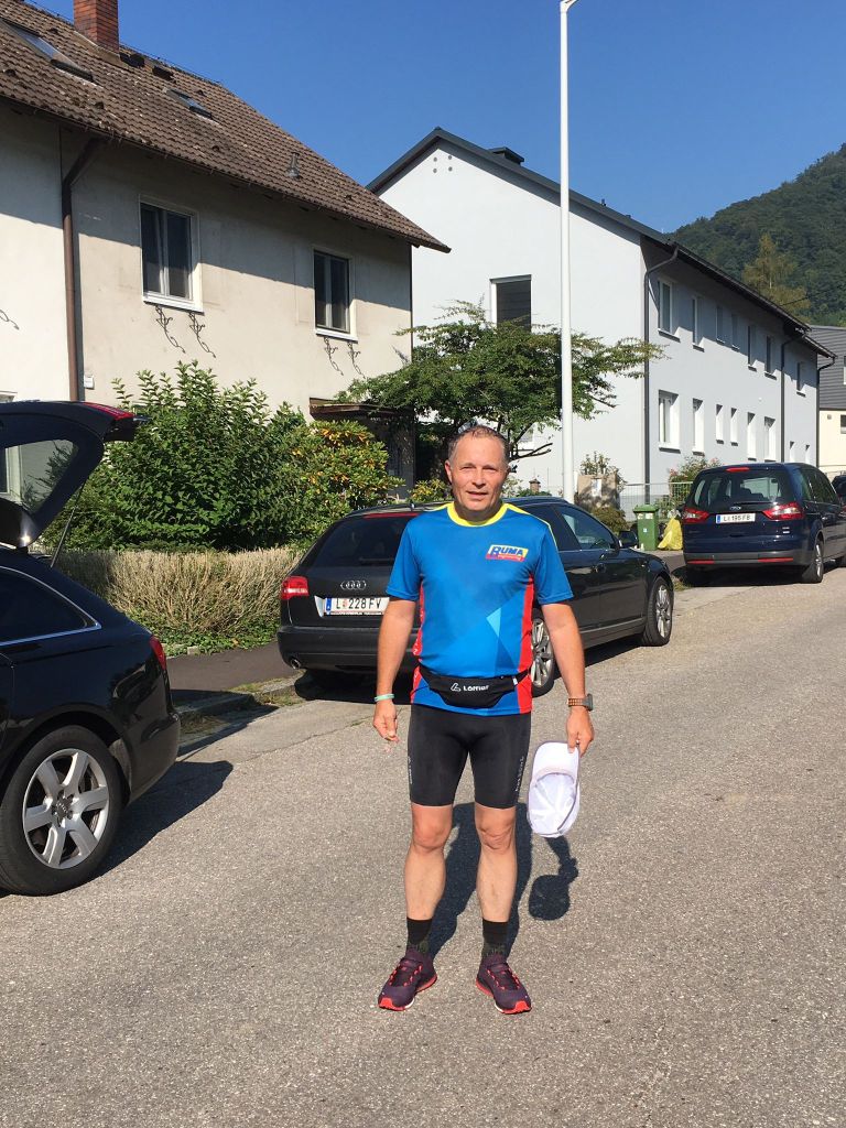 Der Start am Linzer Hauptplatz ist um 7 Uhr. Mehr als 76 Kilometer und 2.260 Höhenmeter liegen vor mir. Angenehme 12 Grad und Sonnenschein lassen viel Freude aufkommen. Viele Läufer sind am Donaudamm zur frühen Stunde schon unterwegs. Nach 6 Kilometer tauche ich in die Ruhe des Pfenningbergs ein. Vogelgezwitscher empfängt mich. Der steile Gipfelanstieg ist die erste Herausforderung. Durch Waldarbeiten ist der schöne Wanderweg im Abstieg schwer beeinträchtigt. Über Engerwitzdorf und den Pferdeeisenbahnweg erreiche ich nach 26 Kilometer in knapp 3 Stunden St. Magdalena. Meine Frau Ingrid begleitet mich und versorgt mich bestens!
