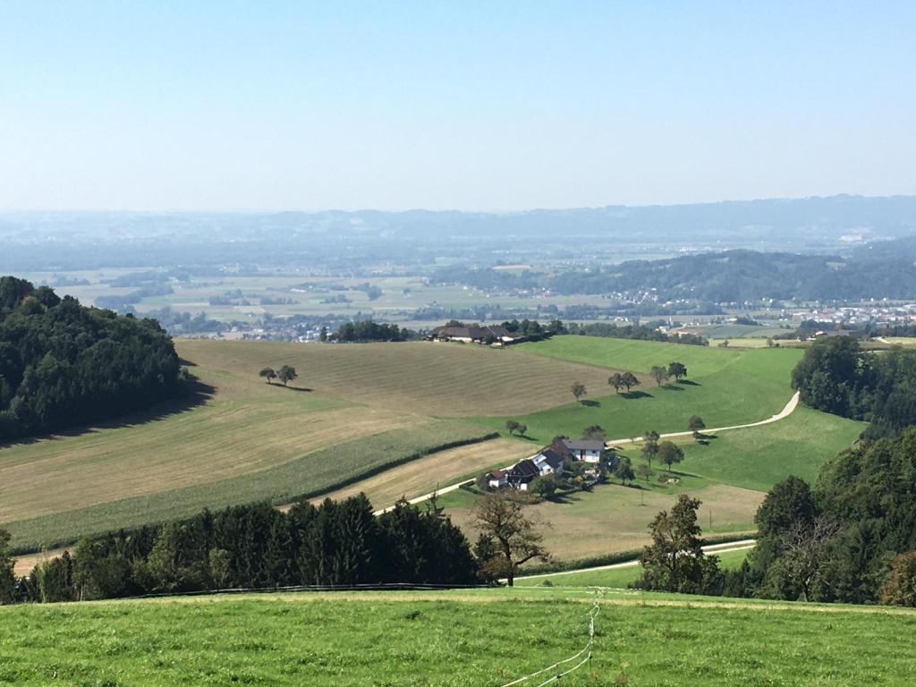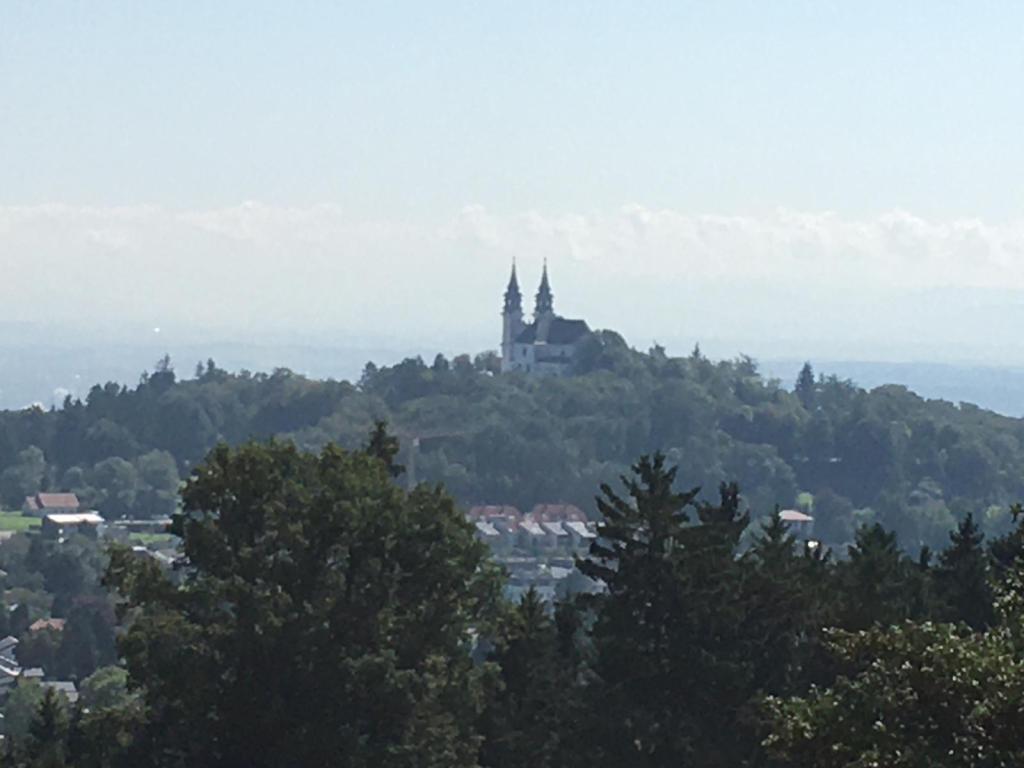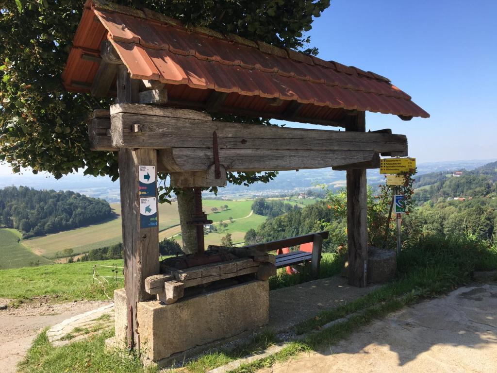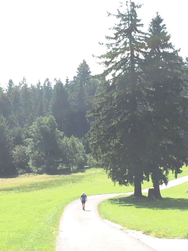 Der längste Anstieg auf die Gis (7 Kilometer, 600 Höhenmeter) ist in einer guten Stunde geschafft. Ein traumhafter Ausblick auf die weitere Strecke belohnt den Aufstieg. Locker laufe ich die Gis über schöne Waldwege hinab und tauche nach knackigen 170 Höhenmetern in den Trubel des Pöstlingbergs ein. Also rasch weg zum Gasthof Freiseder, wo meine Frau wartet (43 km – 5 Std. 20 Min).