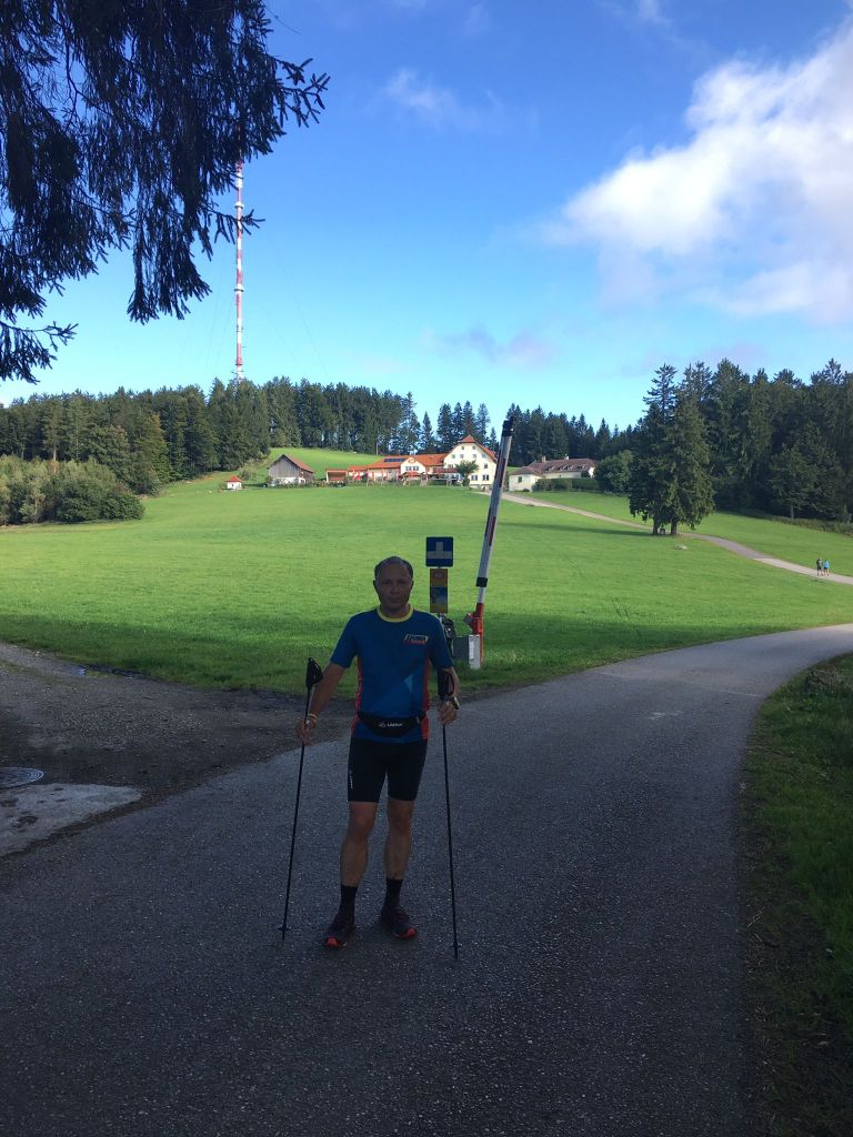 In Bad Leonfelden nehme ich wieder die Stöcke zur Hand. Bis zum Gipfel sind es noch mehr als 5 Kilometer und 400 Höhenmeter. Es geht leichter als gedacht. Nach 5 Stunden und 10 Minuten stehe ich vor der Sternsteinwarte. In 47 Minuten vom Leonfeldner Stadtplatz auf den Sternstein – ich bin stolz auf mich!