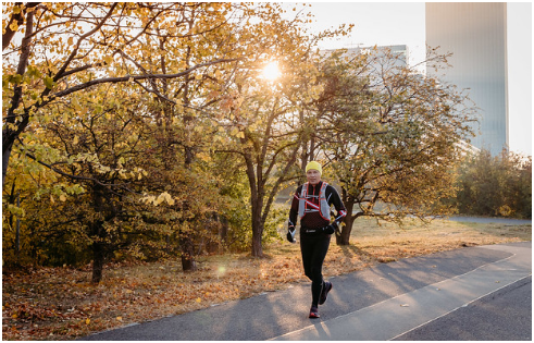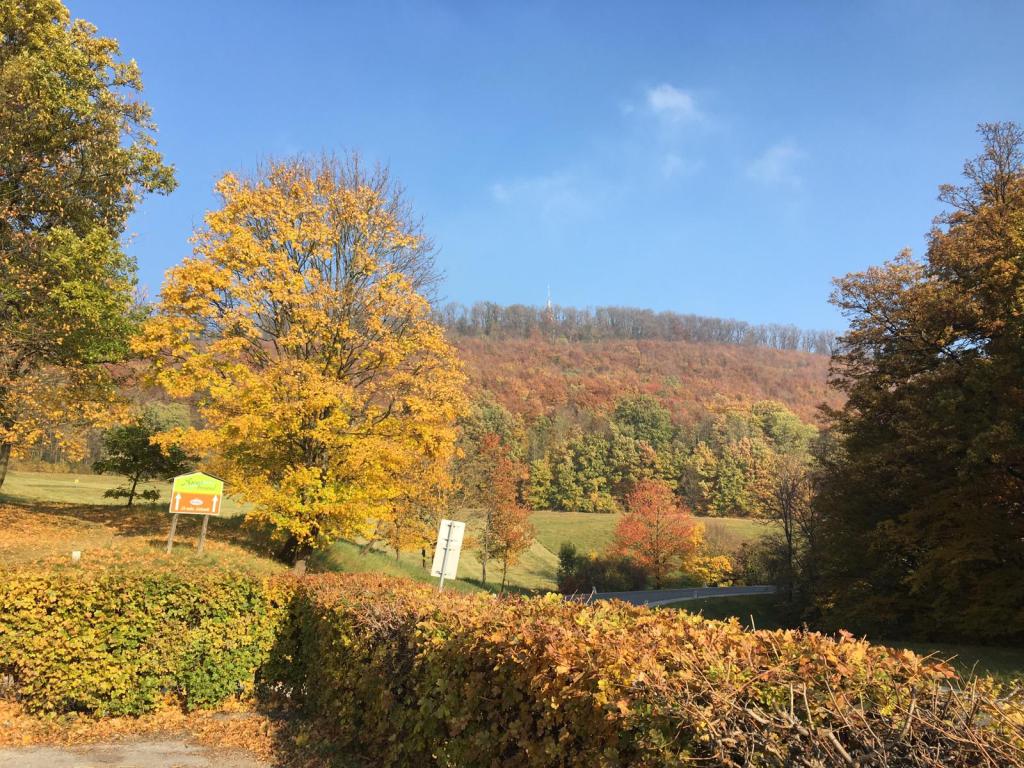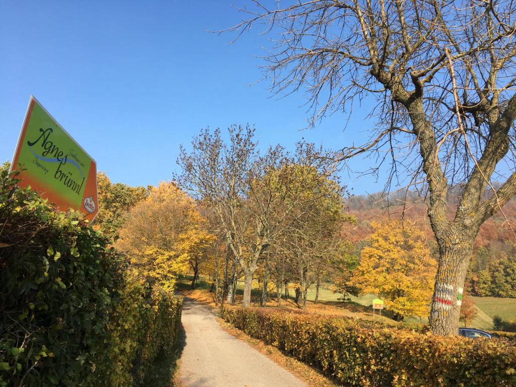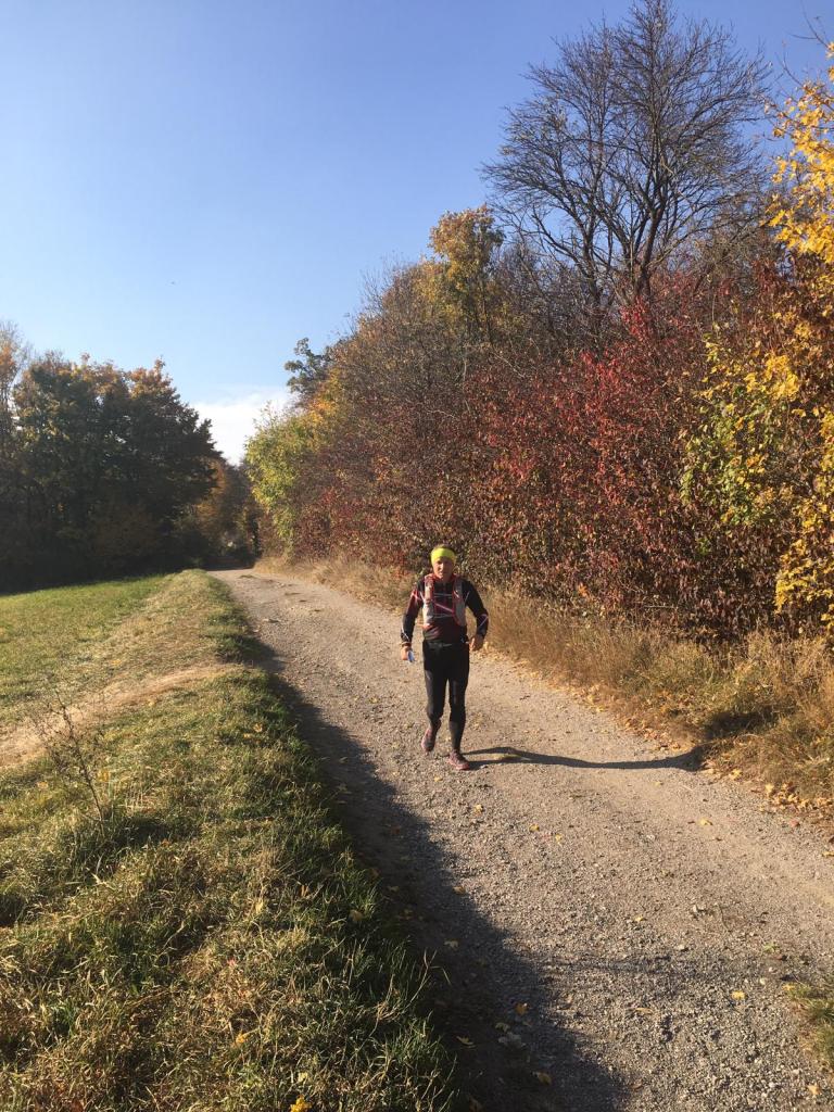 Am Aufstieg zum Leopoldsberg genieße ich den Blick in die schönen Weingärten und drehe mich gerne einmal um, um Wien von oben zu sehen. Nach dem Kahlenberg beginnt der Traillauf im herbstlichen Wienerwald – ohne Zeitstress, einfach super! Das goldenfarbige Laub am Boden hat seine Tücken, denn Steine und Wurzeln sind bedeckt. Insgesamt bin ich fünfmal mit dem rechten Fuß hängengeblieben, konnte aber Stürze vermeiden.