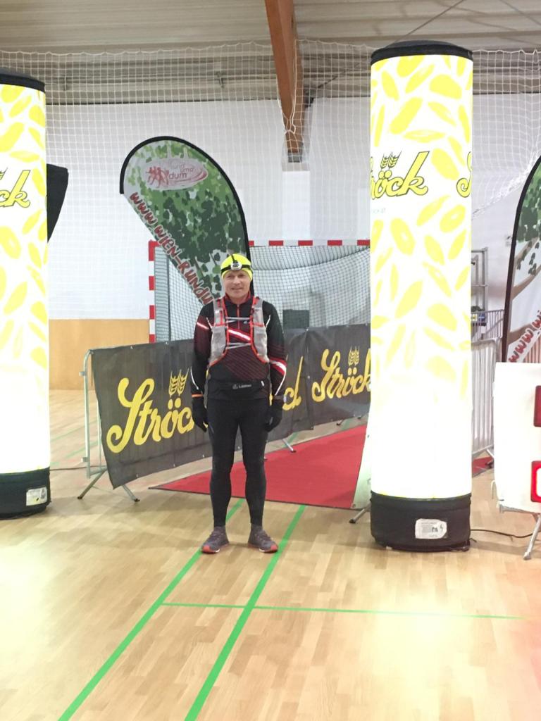 Baustellenbedingt kann Ingrid die letzte Labe nicht rechtzeitig erreichen. Kein Problem, denn die Wasserflaschen sind voll und drei Riegel habe ich immer mit als Reserve. Die letzten 8 Kilometer auf der Donauinsel sind schnurgerade und ziehen sich. Dennoch ist schneller als erwartet die Abzweigung in den Park Richtung Ziel erreicht. Nur noch ein guter Kilometer liegt vor mir. Ich öffne die Tür zur Sporthalle und erreiche nach 11 Stunden und 54 Minuten glücklich das Ziel.