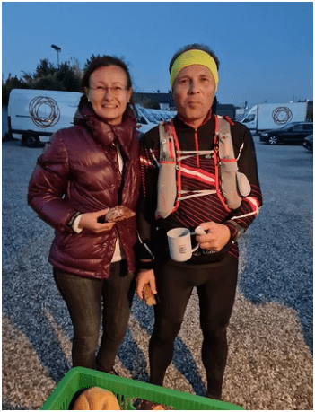 Wir starten um 8:30 bei 7 Grad Außentemperatur. Einige Läufer sind mutig und treten mit kurzer Laufbekleidung an – dafür haben Sie das Ziel nicht gesehen! Heute ist Genusslaufen die Devise. Durch den Sternstein Nachtmarathon vor zwei Wochen ist sowieso keine Spitzenzeit möglich.
