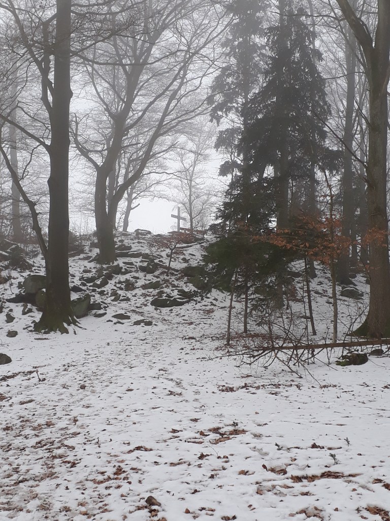 Voll Freude startete ich vom Hauptplatz Richtung Gis. Beim Anstieg begegnete ich einem Wanderer, der vom tollen Sonnenaufgang schwärmte. Davon war weit und breit nichts zu sehen. Leichte Minusgrade und Hochnebel sollten mich begleiten. Einmal kam kurz die Sonne zum Vorschein – kurz wie gesagt. Oben auf der Gis blies der Wind in Orkanstärke – gefühlte minus 20 Grad – also nichts wie runter. Dies war leichter als gesagt. Ein Eiertanz auf schnee- und eisbedeckten Wegen begann. Mit viel Glück konnte ich Stürze vermeiden.