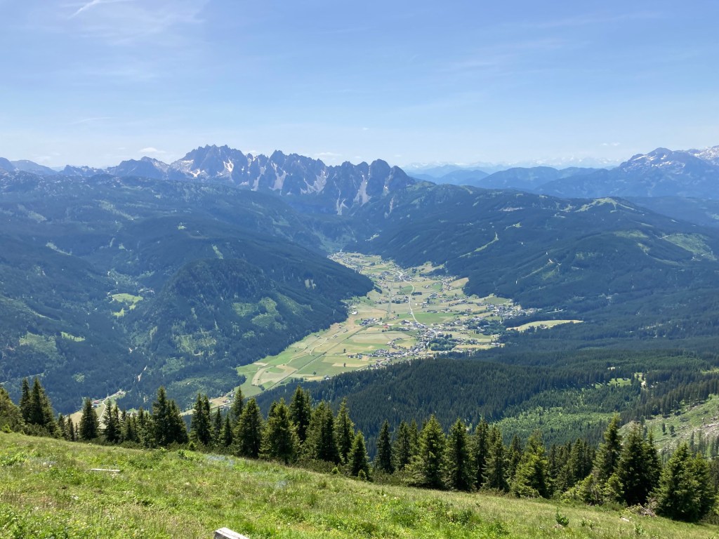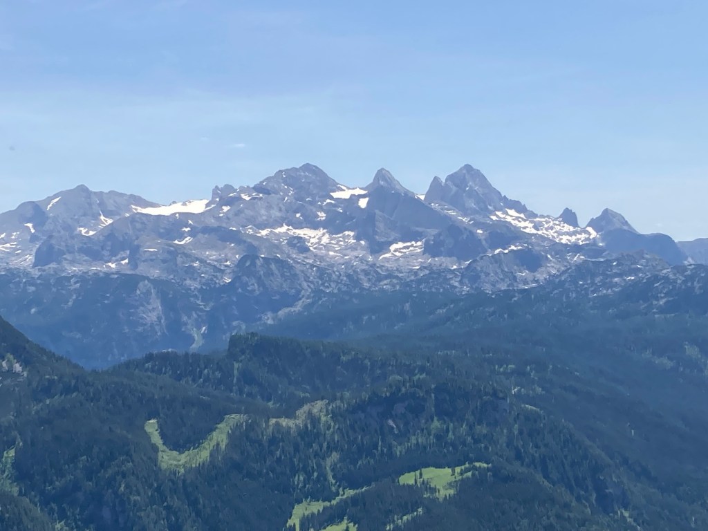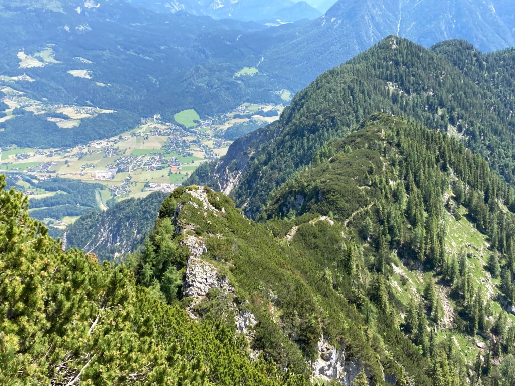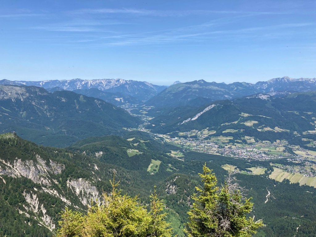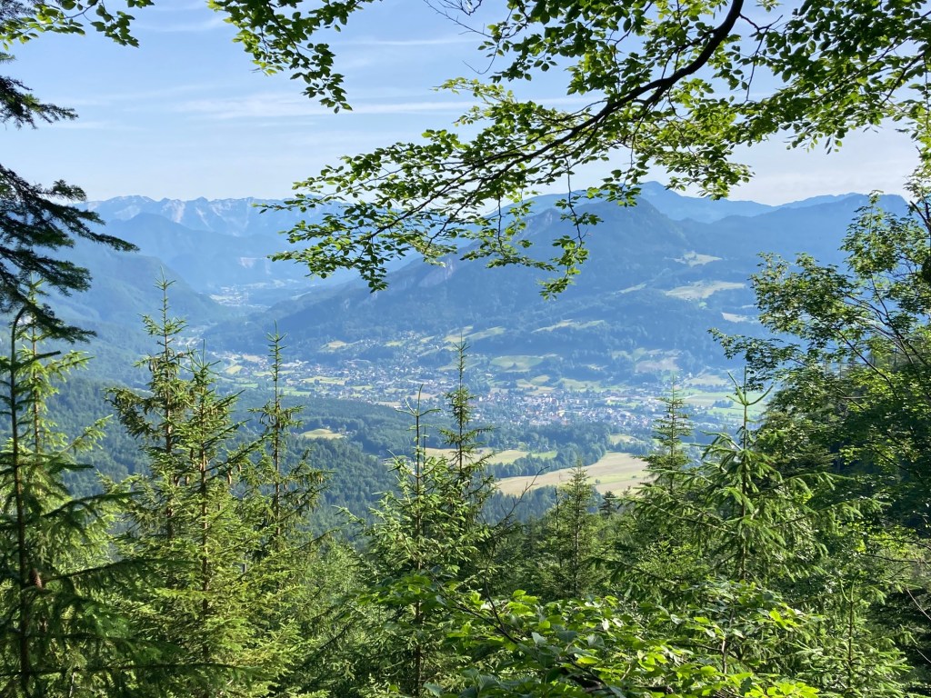 Der Wecker läutet um 5:00 Uhr. Frühstücken, Rucksack packen, die Abfahrt nach Bad Goisern ist pünktlich um 6:00 Uhr. Mein Freund Rudolf und ich wollen die Kalmberge überschreiten und starten frühzeitig, denn es sind 30 Grad gemeldet. Wir lassen das Auto in Bad Goisern im Ortsteil Ramsau (beim Hüttenparkplatz) stehen und steigen entlang der Rodelbahn bergwärts. Das Gelände wird beim Anstieg zur Tiefe Scharte immer steiler. Dort auf knapp 1500 Meter Seehöhe angekommen, bietet sich ein traumhafter Blick, wie aus dem Flieger, auf Bad Goisern.