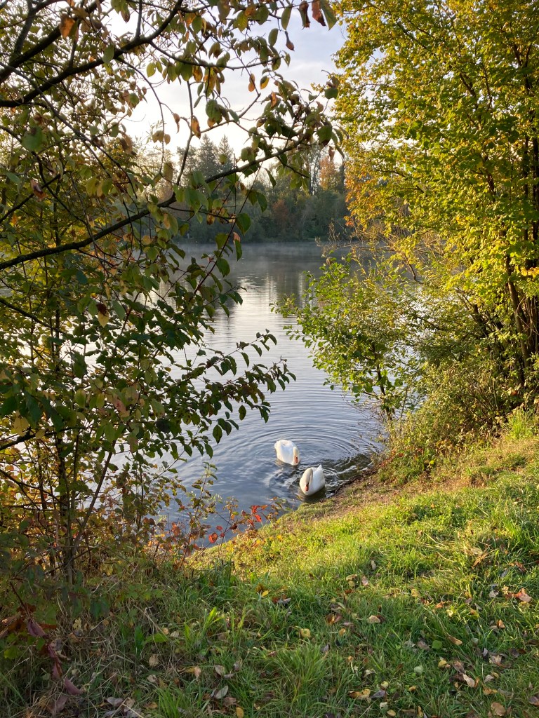 Entlang der Traun nach Wels sind es 27 Kilometer. Eine endlose gerade Strecke auf dem Radweg R4. Im Wald begleiten mich unheimliche Geräusche – nur nicht umdrehen! Auch Wasservögel, aufgeschreckt durch mich, hüpfen in die Traun und erschrecken mich gewaltig. Ingrid, meine treue Seele, wartet zweimal auf mich im finsteren Nirgendwo und versorgt mich mit Verpflegung.