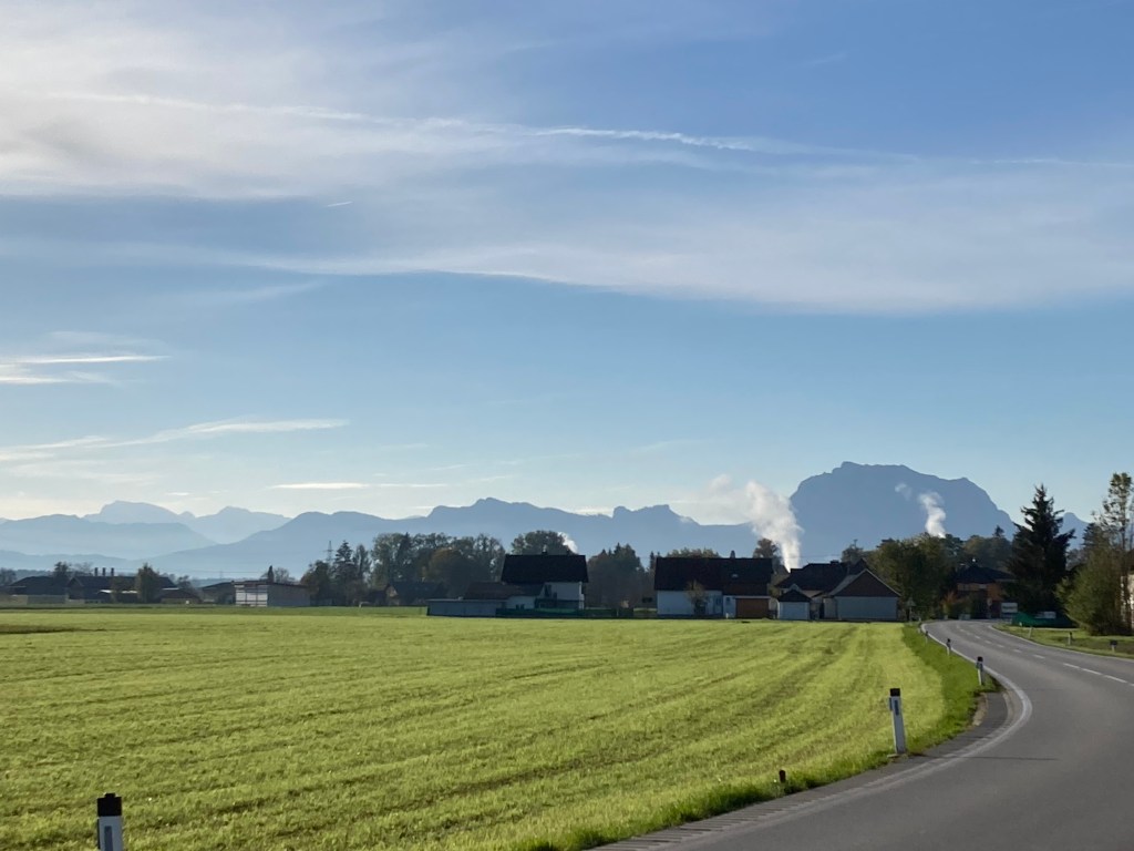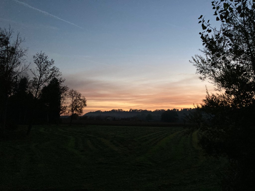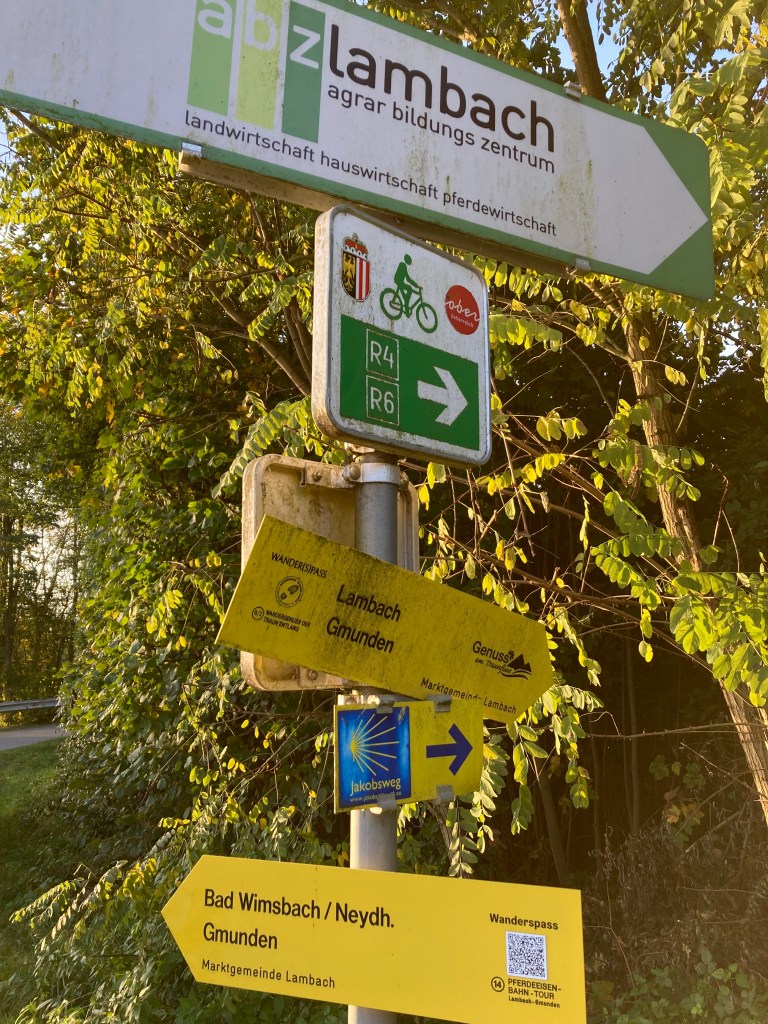 Zwischen Wels und Lambach beginnt es mit einem schönen Morgenrot zu dämmern. Die Hälfte der Strecke ist nach 5 Stunden geschafft. Richtung Lambach muss der zugewachsene Wanderweg an der Traun verlassen werden. Gut 5 Kilometer sind auf Nebenstraßen zu Laufen. Jetzt beginnt der schöne Teil der Strecke. Der Traunstein grüßt im Morgenlicht und zeigt mir an, wohin die Reise geht.