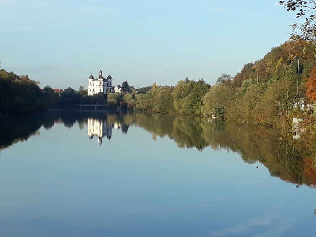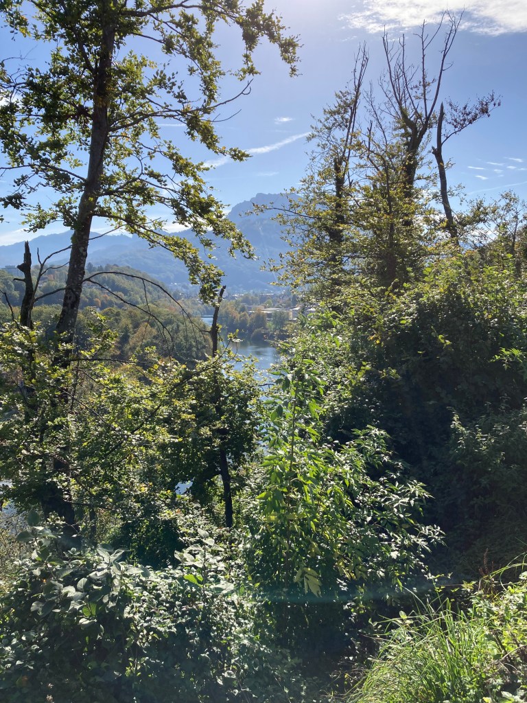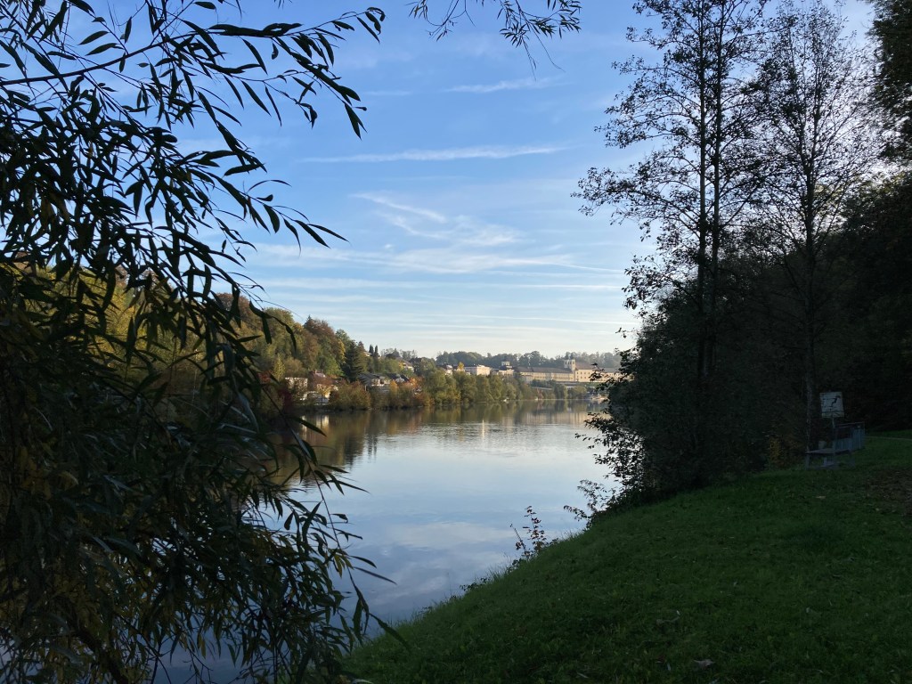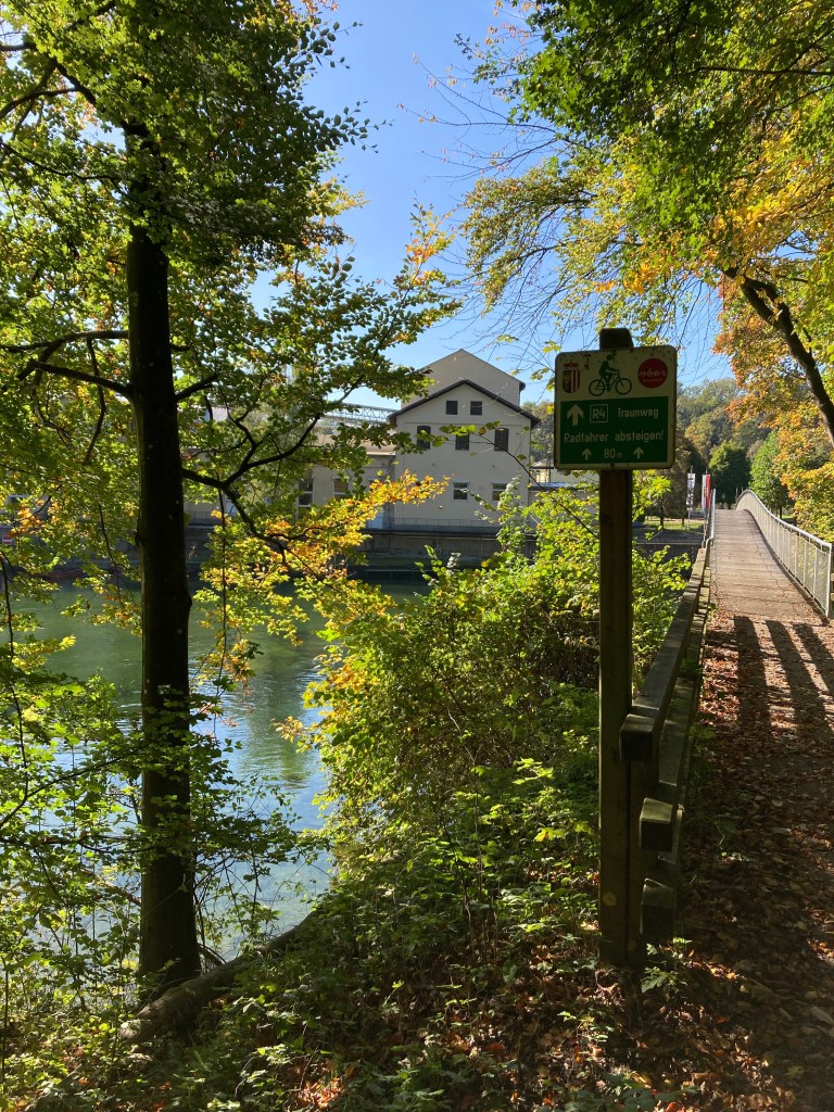 Stadl-Paura mit der schönen Dreifaltigkeitskirche gibt ein malerisches Fotomotiv ab. Es folgt ein 7 Kilometer langes Waldstück, bei dem die Wegfindung einfacher ist, als gedacht. Nach dem Traunfall führt der Weg mich nach Laakirchen. Die kleine Brücke bei der Papierfabrik bietet einen unglaublichen beeindruckenden Blick auf die herbstliche Traun (Fotos!)