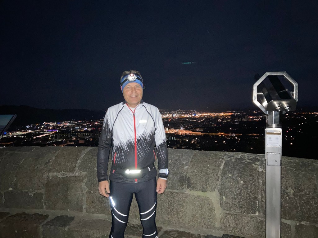 Es ist der 10.10.2022 – 1 Uhr 45 und Vollmond. Ich stehe auf der Aussichtsplattform des Pöstlingberges und blicke auf das nächliche Linz. 80 Kilometer nach Gmunden liegen vor mir. Durch den Bergunfall war nur wenig Training möglich und es mehren sich die Zweifel, ob dies heute möglich ist.