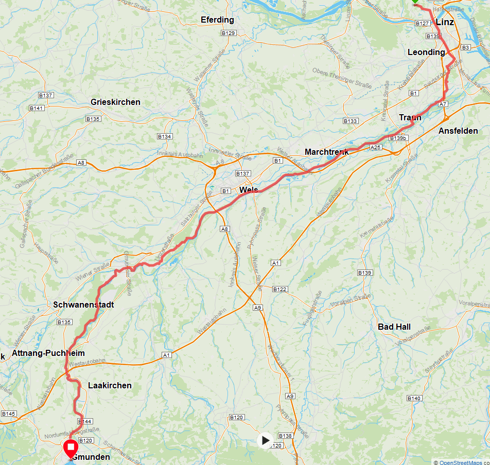 Unglaublich – nach fast 11 Stunden habe ich es geschafft! 80 Kilometer und über 500 Höhenmeter liegen hinter mir. Ein großer Dank gilt meiner lieben Ingrid – ohne sie stünde ich nicht in Gmunden!