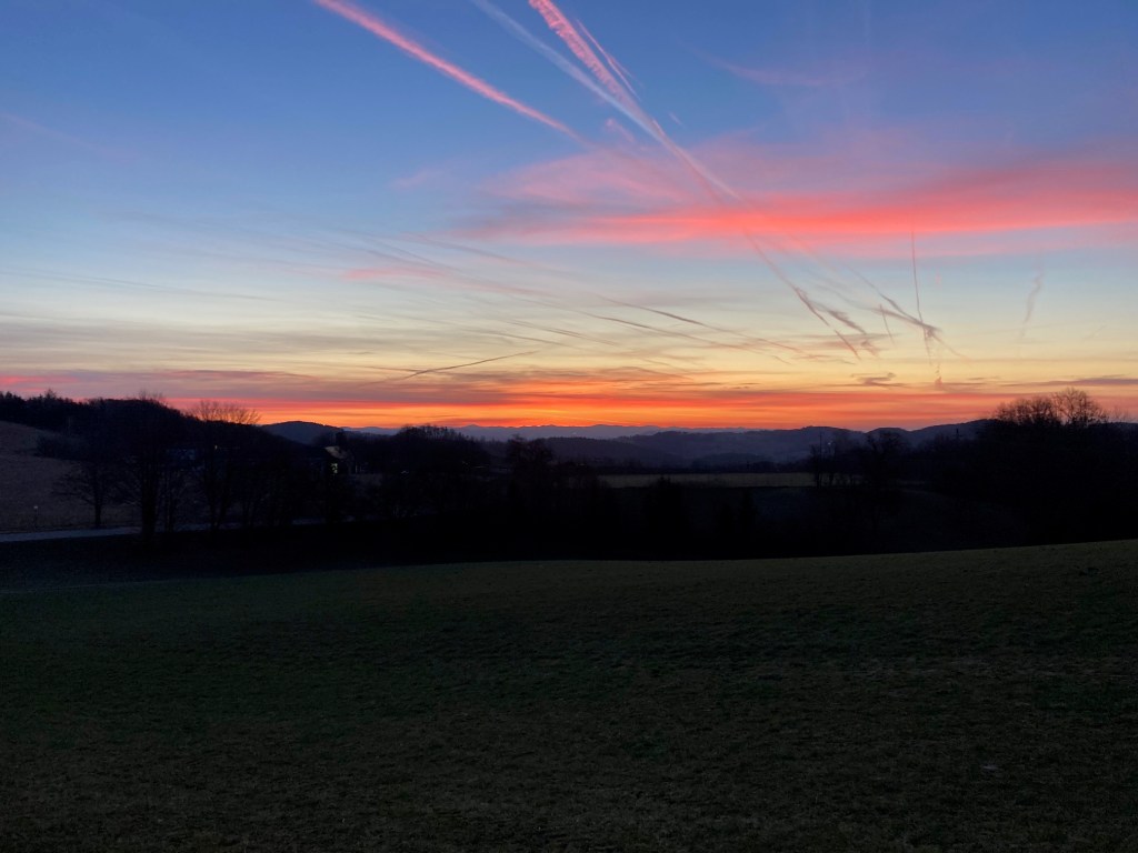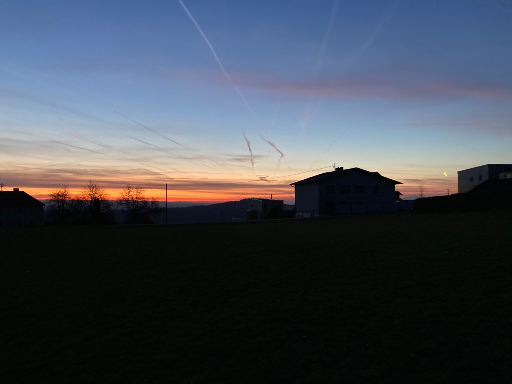 Am Pfenningberg empfängt uns eine traumhafte Morgendämmerung und der Tag beginnt. Nach 2 Stunden kann ich die Stirnlampe übergeben und freue mich auf den Sonnenaufgang. Meine Frau Ingrid begleitet mich mit Verpflegung und Motivation – vielen lieben Dank dafür!