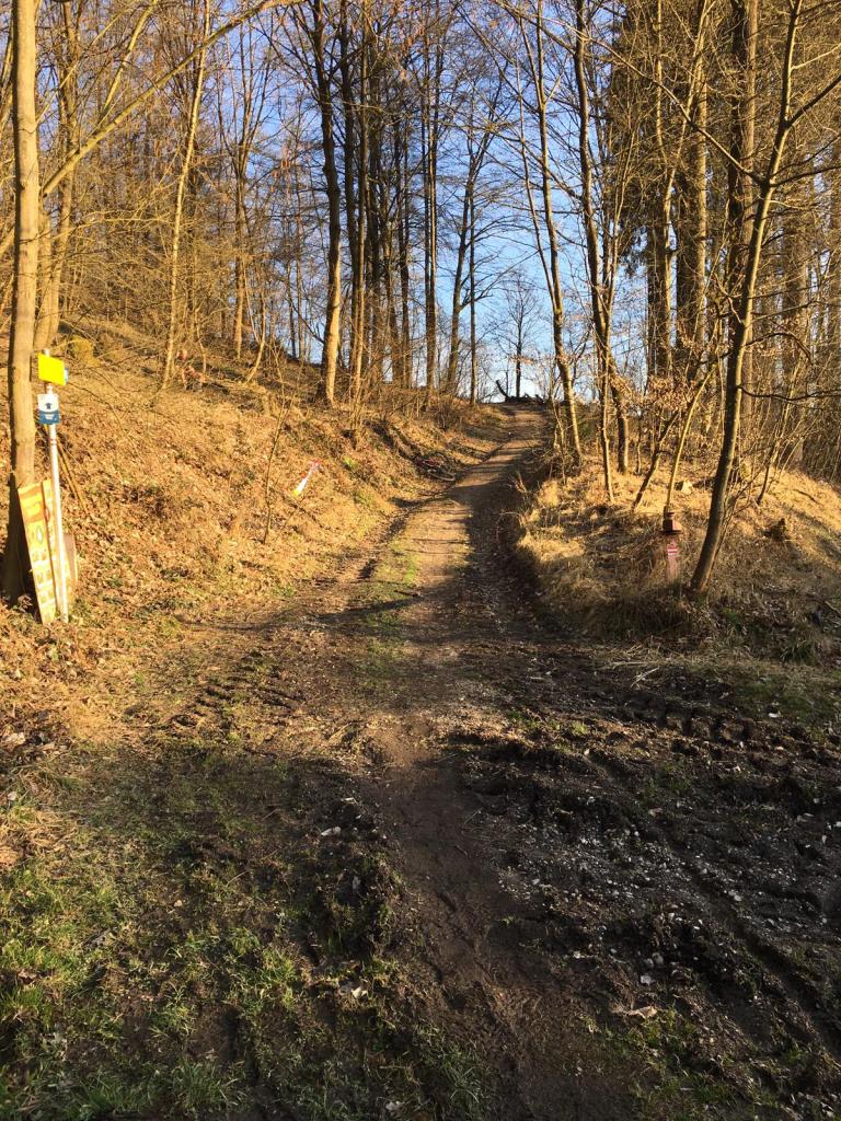 Über den malerischen Pferdeeisenbahnweg wird der Anstieg zu Gis erreicht. Heute läuft es sehr gut – die Anstrengung hält sich in Grenzen. Dafür ist die Freunde am interessanten Weg und den schönen Ausblicken groß. Nach einer guten Stunde und über 600 Höhenmetern ist die Gis erreicht. Nun geht es bergab! Der Weg ist teilweise steinig, wobei die Steine unter dem Laub oft nicht sichtbar sind. Vorsicht und Tempo Reduktion ist die richtige Entscheidung. Ein Sturz könnte den Lauf vorzeitig beenden.