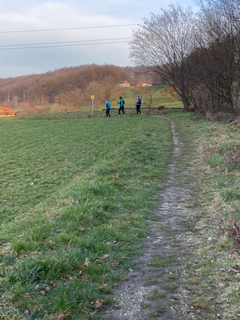 Pünktlich um 4 Uhr geht es los in die finstere Nacht. Im Schein der Stirnlampe begleiten mich zwei Bekannte. Manuela, Manu und ich laufen entlang der Donau Richtung Pfenningberg. Durch angeregte Gespräche vergeht die Zeit wie im Flug. So macht das Laufen richtig Spaß!