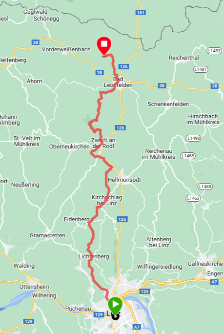 In Zwettl an der Rodl komme ich in genau 3 Stunden an. 24,5 Kilometer und 1.000 Höhenmeter sind viel schneller als erwartet geschafft. Nun folgt der liebliche Bienentrail entlang der malerischen Rodl zum Golfplatz Sterngartl. Ich bin voll motiviert und laufe auch die Bergaufstrecken nach Schönau. Dafür war ich zu schnell und verpasse Ingrid, die 2 Minuten später eintrifft. Macht nichts, denn nach Bad Leonfelden sind es doch nur 5 Kilometer durch den lieblichen Sternwald.