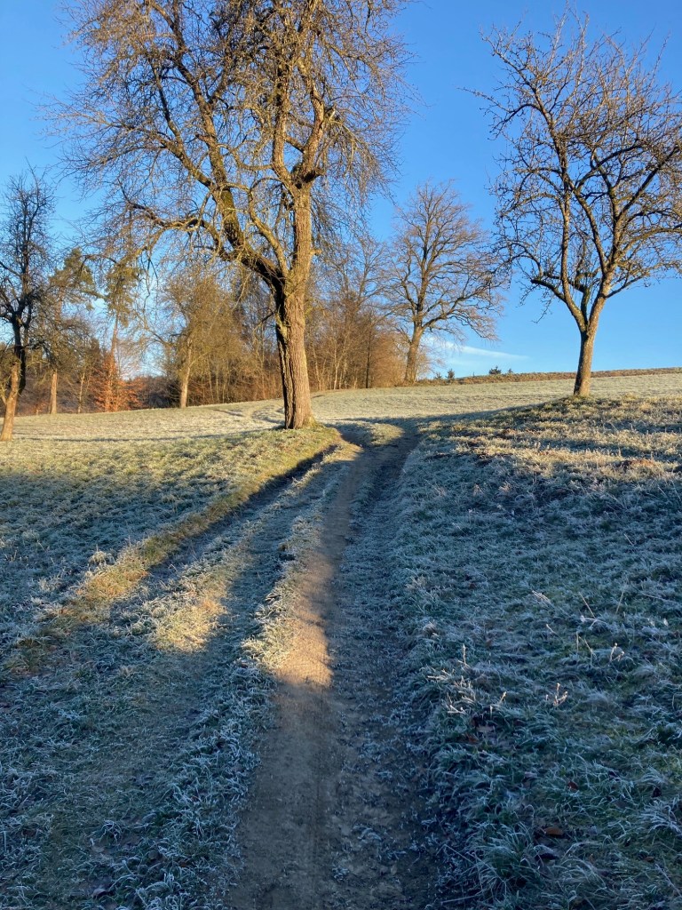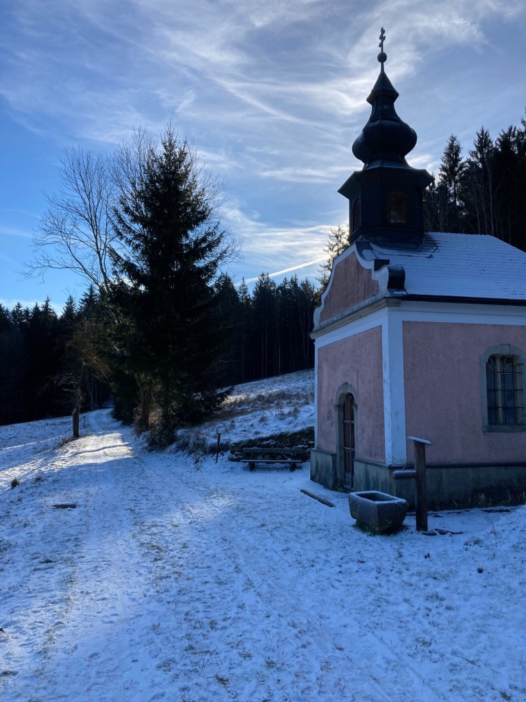 Die Entscheidung, am 27.12.2024 zu starten war goldrichtig! Nach dem guten Wetterbericht stand ich hoffnungsvoll um 8 Uhr am Hauptplatz mit dem Ziel, in 7 Stunden den Sternstein zu erreichen. Es war trüb und hatte minus 2 Grad. Ein Vorteil, denn der nasse Boden im Diesenleitenbachtal war gefroren. Nach Überklettern einiger, noch immer nicht weggeräumten Bäume blinzelte die Sonne schon durch den Nebel. Bald war ein wolkenloser Himmel zu sehen und die Freude am Laufen stieg gewaltig.