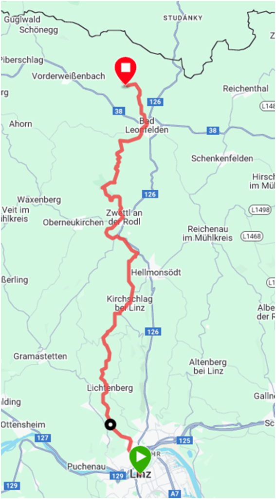 Im Sternwald nach Bad Leonfelden war der Weg unvermutet wegen Holzschlägerungsarbeiten gesperrt. Was tun? Ab durchs Fichtendickicht! Unangenehm aber notwendig! Bad Leonfelden wurde nach 4:45 Stunden erreicht. Ingrid – die gute Seele der Ultraläufe – wartete schon auf mich mit Verpflegung und Getränken. Vielen Dank -ohne dich wärs nur halb zu schön!