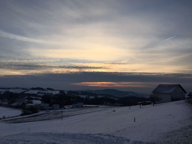 Von der Warte auf der Gis Richtung Kirchschlag wurde der Schnee immer mehr. Vorsichtiges Bergablaufen war angesagt um ja nicht zu stürzen. Von Kirchschlag Richtung Zwettl an der Rodl zeigte sich das Wetter von der harten Seite. Trotz sehr warmer Kleidung, Sturmhaube und Kapuze ließ der eiskalte Wind das Gesicht einfrieren.