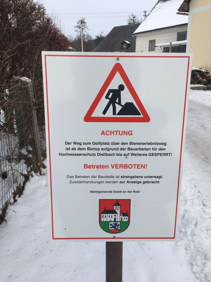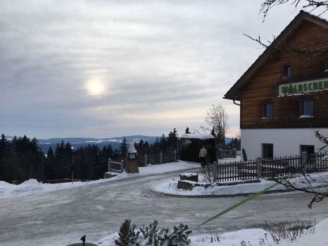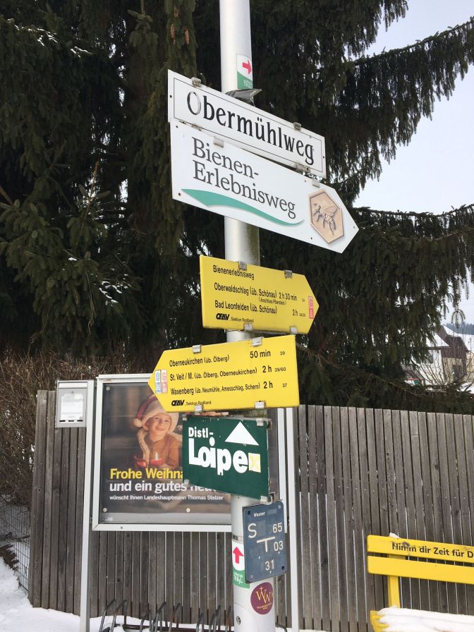 Nach knapp vier Stunden waren 25 Kilometer absolviert und Zwettl erreicht. Der schöne Bienenweg war diesmal wegen einer Baustelle gesperrt. Am Golfplatz Sterngartl vergnügten sich die Eisstockschützen und Langläufer. Nach dem lieblichen Ort Schönau ging es über den Sternwald nach Bad Leonfelden. Viel lockerer Schnee machte das Laufen sehr anstrengend.